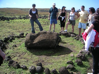 ガイドさんが英語とスペイン語でそれぞれ説明してくれる。なぜモアイを作るのか、なぜ全部倒れているのか、帽子みたいなのは何なのか、などなど。ろくな予備知識無しにきてしまったので、私には初めて聞く話ばかりでした。