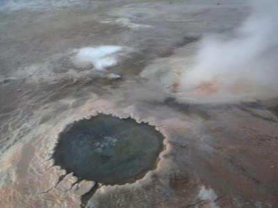 次に向かった先は、同じく間欠泉なのですが、ここには温水プールがあります。温泉みたいな感じで。西洋人のお客さんたちがそそくさと水着に着替えて飛び込んだ・・・は良いですが、皆の顔が一瞬で引きつる。苦笑いで「冷たくないよ。うん。」私も凍えた足を温めようと足湯。うん、冷たくない。・・・けど、温かくないぞーーー。体温とほとんど同じぬるま湯でした。しかも、水流が結構あって、一瞬温かい?と思ったら冷たくなって、を繰り返してた。
