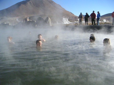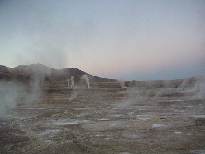 5/9 3時半起床。早朝の。今日は「GEYSER DEL TATIO」という間欠泉で朝日を楽しむツアーなのです。日の出の直前は-7度にも下がるので、着られるだけの服を着て出発。