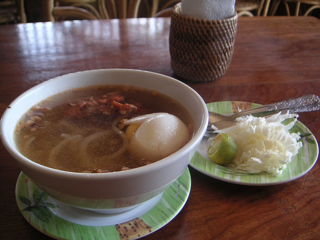 夜は、今日そんなにお金使わなかったなと思い、ちょっとリッチなディナー。竹や木の皮で作った素敵な建物の中でごはん。雰囲気は大変よろしいのですが、一人で行く店じゃないなぁと思った。食事に出てきたスープが驚くほど変な味だったのもあり、自分は安食堂のほうが良いや、と思った夜でした。