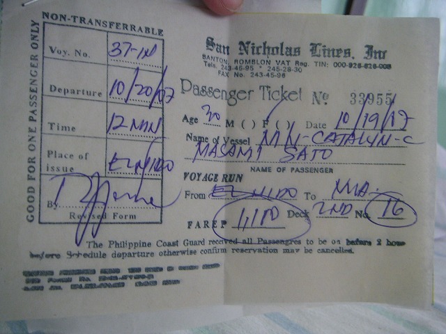 スケジュール:月・木の7PMイロイロ出発、翌8AMクヨ着、3PMクヨ発、翌々8AMプエルト着。