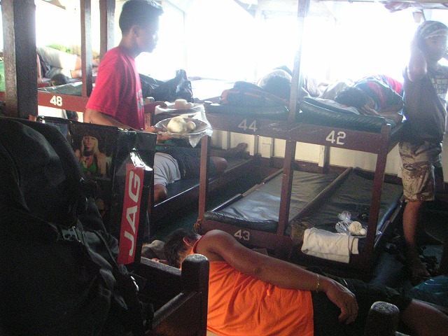 TOURIST CLASS:潮風を避けれて良いけれど、夜中寒い。DELUXに空きがあれば移動したらいいけど。