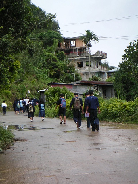 と、その前に、ここにたどり着く道のりがちょっと大変でした。何が大変かっていうと、道が雨でぐちゃぐちゃになってたせいで、1km弱、歩かなきゃならなかったのですよ。Roxas-Taytay間で。約17キロのバックパック背負って、雨でどろどろになった、結構起伏のある、滑りやすい道を、ひーこら言いながら歩きました。