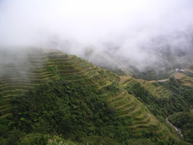 と、徐々に雲がはれてきて、広範囲にわたるライステラスを堪能。周りのフィリピン人に混ざって、おぉーと歓声をあげてきました。