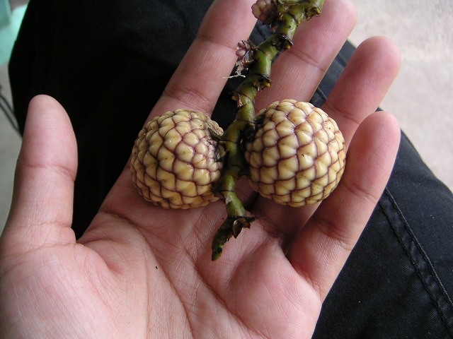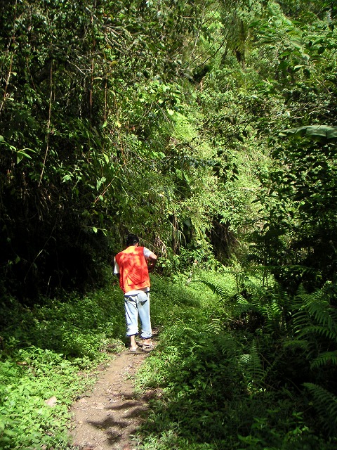 その辺に生えてる野いちごたべたり、休憩所でガイドの兄ちゃんの歌を聞いたり、おばちゃんに変な果物をもらったりしながら、2時間ほど山歩き。乾期なら途中まで車で上がれるのですが、雨季なのでその分も上る。旅行でずいぶんと体力はついてたものの、病み上がり+αでめっちゃきつい。途中、何度「もうかえるーーー」と泣こうと思ったことか。。