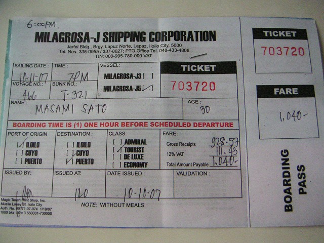 週に2回しか出ない船で、翌日に船があったため、それに決定。これで私のイロイロ滞在はたった二日に決定です。この日のうちに全部片付けておけて良かったーーー。