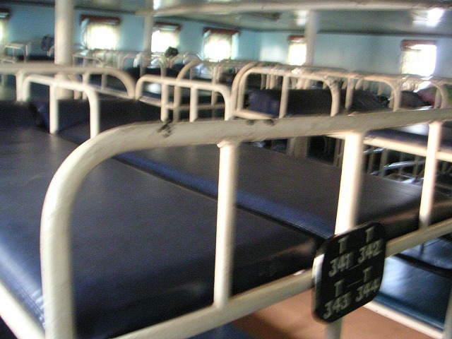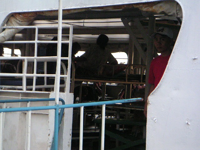 港に着いて、船に荷物を置きに言ったところで、ちょっと不安におそわれる。船のフロアすべてに二段ベッドが敷き詰められてる!安いクラスだけかと思ったら、Tourist クラスも同じく。この船の2ndクラスは大部屋だったのか。。