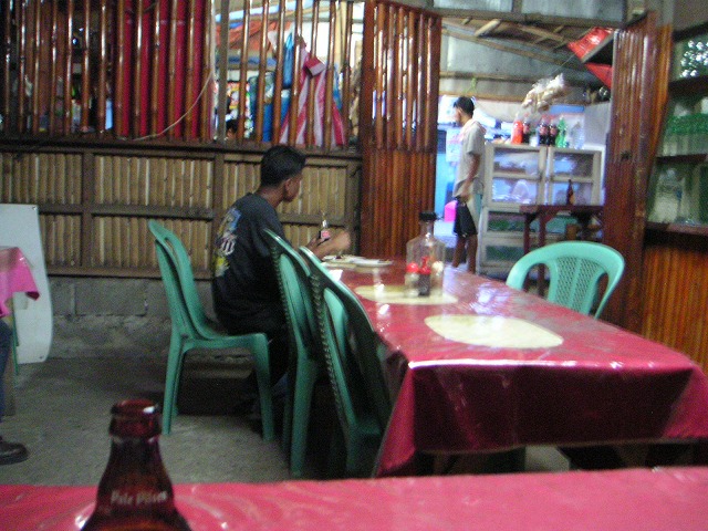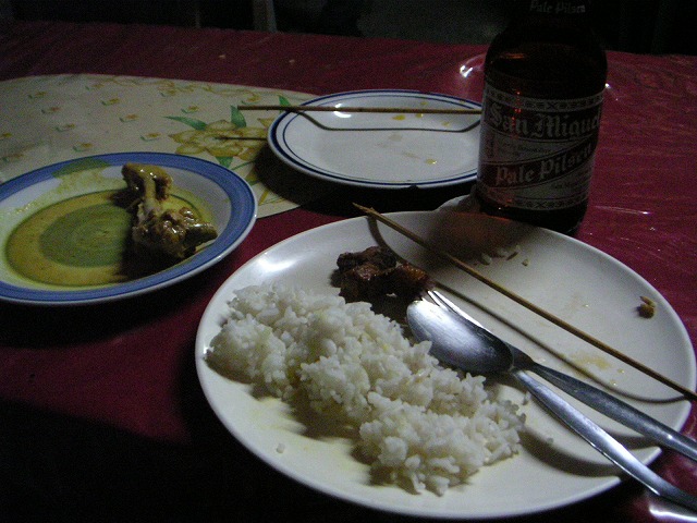 んで、港の前の食堂にてサンミゲルでいつものように乾杯。コタニンさんと会うときはいつもお酒が一緒。以前泊めてもらった時に、M.H.聴きながら焼酎一本空けたのはほんとに良い思い出。楽しい思い出をたくさん、ありがとうございました!