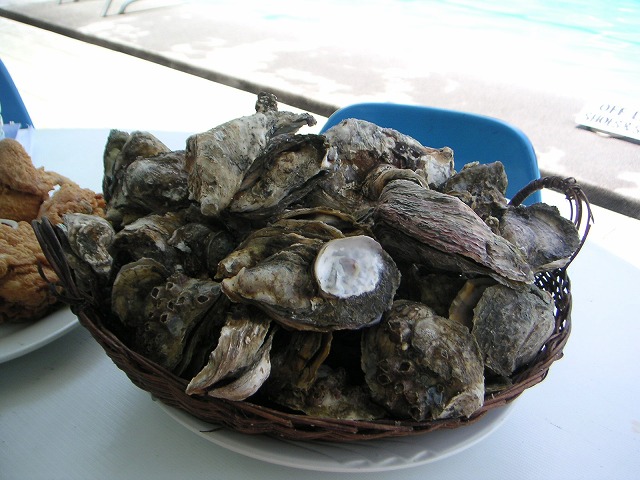 牡蠣が山盛りで出てきて凄い量だな、と思ってたんですが、一山70ペソ(≒200円)らしいです。貝殻ごと丸焼きになってるんですが、中がレアでした。前日、「東南アジアで生牡蠣食べる勇気はないなぁ、あはは」というメールを書いていたのに。明日の自分を危惧しつつも、自分のためにオーダーしてもらったわけなので、20個くらい食べた。明日は日曜日だし、おなか壊してもなんとかなるさ。