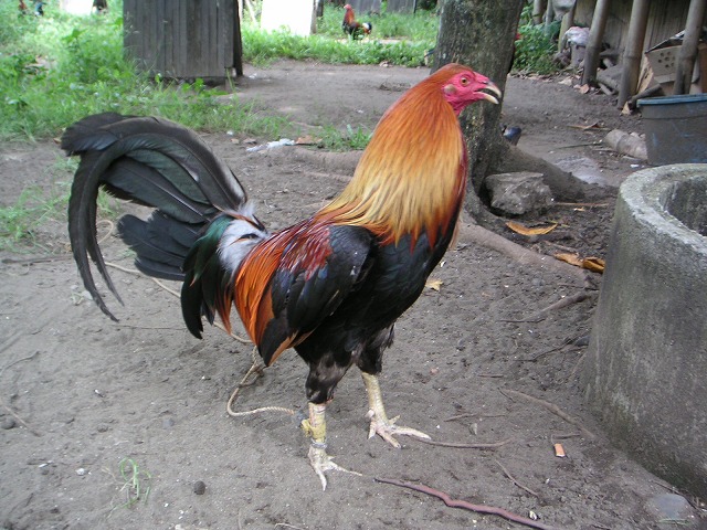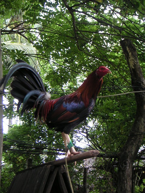 食事中、闘鶏の話が出て、私が「一度、見てみたいんだよねー」というと、だんなさんが闘鶏ファームのオーナーらしく、近くに自分のファームがあるので見においで、とつれてってくれました。トライシクル(バイクの横に座席がついた乗り物)で10分ほど。