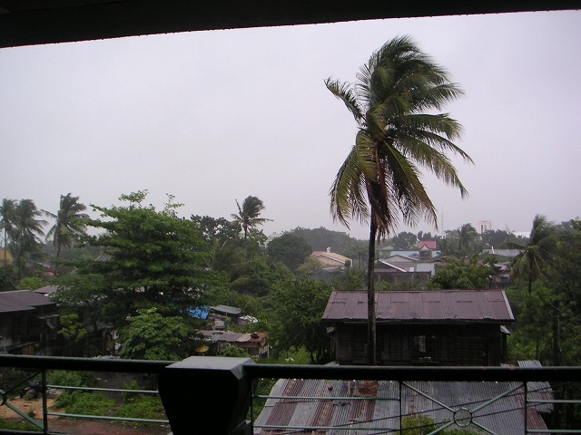 さてさて、最近のイロイロは、大雨の毎日です。9月初旬は雨がほとんど降らなくて、雨季が明けたかと思ってたのですが、パナイ島近辺はまだまだ先のようです。おかげで、週末にあった農場訪問とギマラス島探検という、楽しい予定がすべて中止に。。しょんぼりですよ。写真は、日曜日に落胆しながら撮影した、台風のような雨。