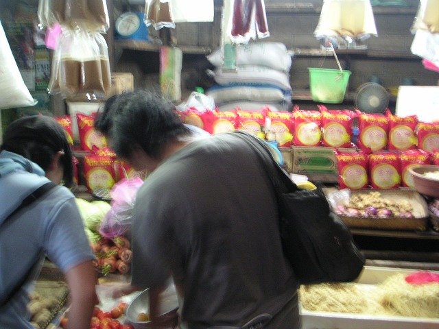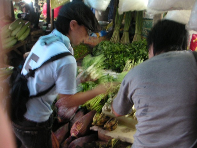 まずはうちの近所の LAPAZ MARKET で食材のお買い物。以前ここに潜入したときは、地元の人たちの視線に負けて写真を撮る余裕がなかったんですが、今日は一人じゃない!と張り切ってぱちり。お買い物風景。
