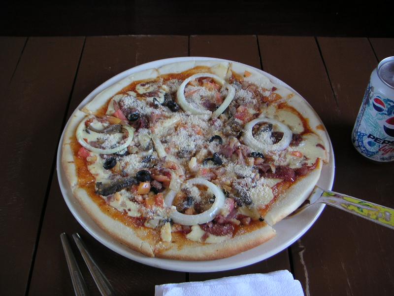 Ginaのクラスが11時からなのですが、早めにきりあげて、Melanieも呼んでお昼ご飯をたべにいってきました。Afrique'sという、フィリピン特製ピザが楽しめる、有名なレストラン。ここのスペシャルピザは、少し甘めのソースにベーコンの旨みがマッチして、ほんとうにおいしかった!!