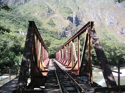 マチュピチュ観光の拠点の町、アグエス・カリエンテス(マチュピチュ村)までは列車で行くのが普通なんですが、マチュ村を少し越えたサンタテレサから、「2・3時間、線路の上を歩けばいけるよ」と聞いたので、列車で行くと結構高いし(数十ドル)あっさり辿り着いてもツマンナいねー、とひねりをきかせて、散歩コースを選択。