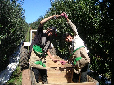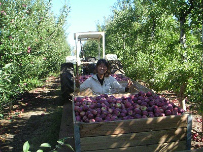 仕事は、大人が4人くらい体育座りできる箱いっぱいにリンゴをつめて、一箱27ドルちょい。痛んだリンゴが入ってなければ、5ドルの追加。1日にすごくがんばっても、私は3箱か4箱が限界でした。